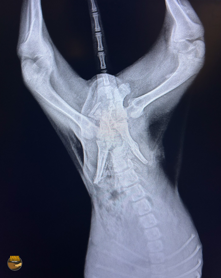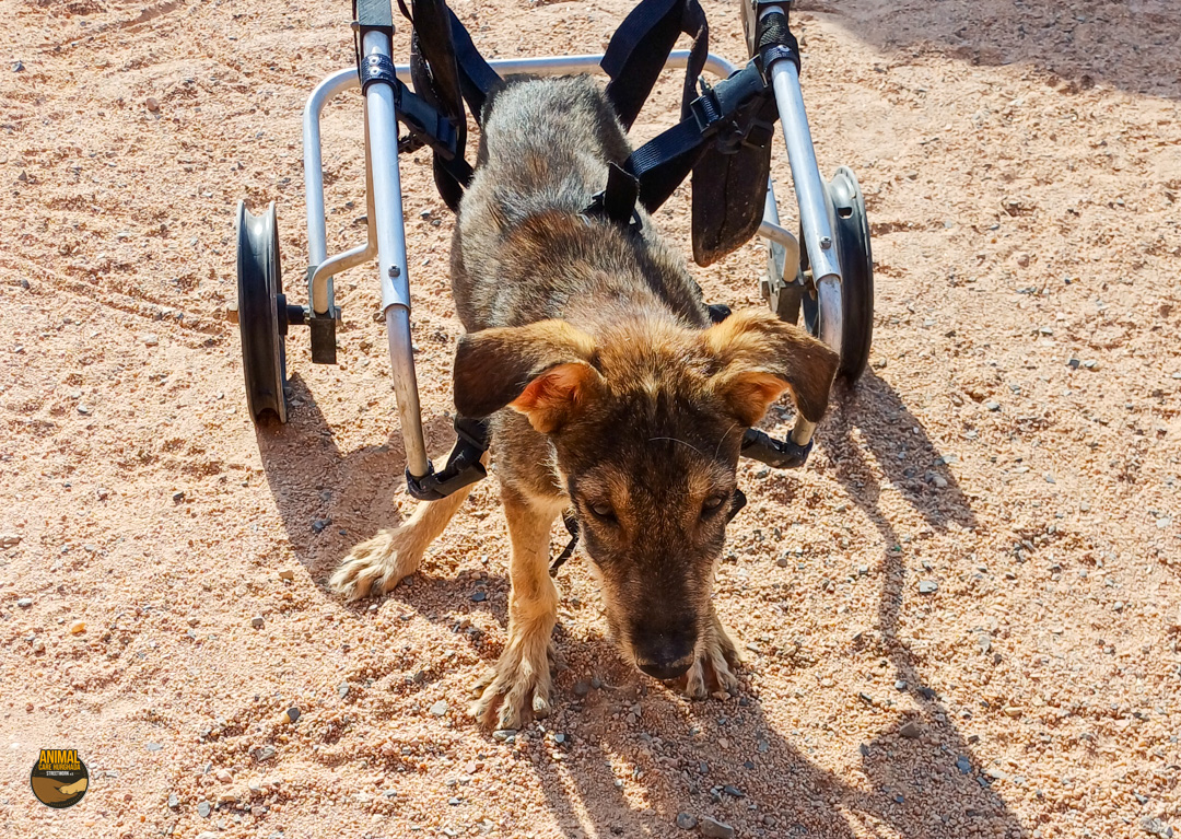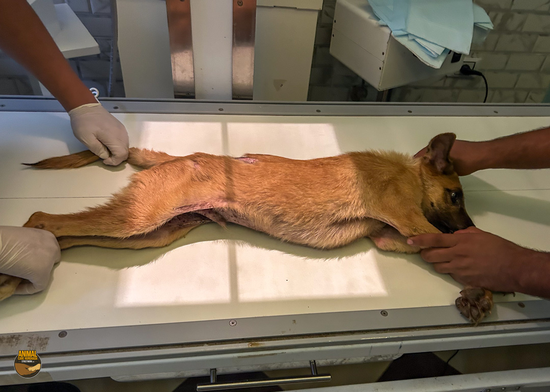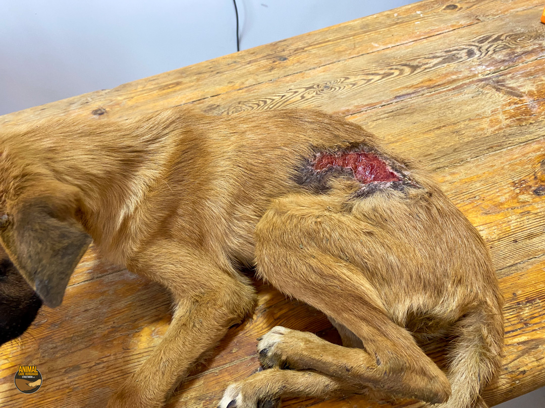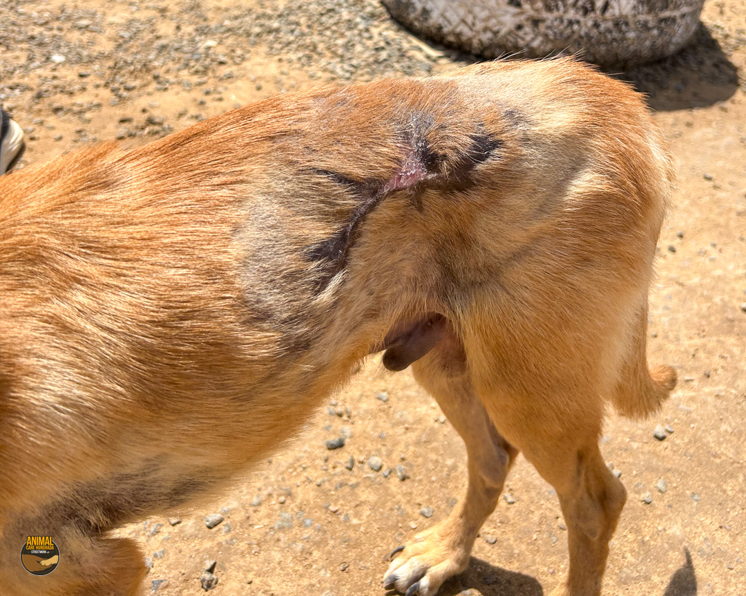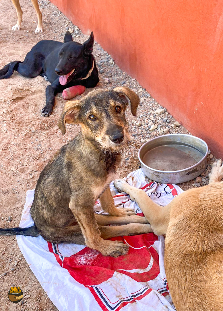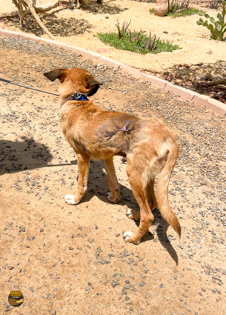 Sammy-Sunshine ist ein junger Hund – noch ein echter Welpe, der voller Energie, Lebensfreude und Neugier steckt. Trotz seines schweren Starts ins Leben hat er seinen fröhlichen Charakter nie verloren. Er kam stark abgemagert und mit einer großen offenen Wunde an der rechten Körperseite zu uns ins Center. Unsere Tierärzte haben ihn sofort erstversorgt, und am nächsten Tag wurde er in der Top Vet´s Clinic geröntgt. Leider ergab das Röntgenbild eine schlimme Diagnose: Sammy hat ein gebrochenes Becken, das nicht operiert werden kann. Eine vollständige Heilung wird es also nicht geben.