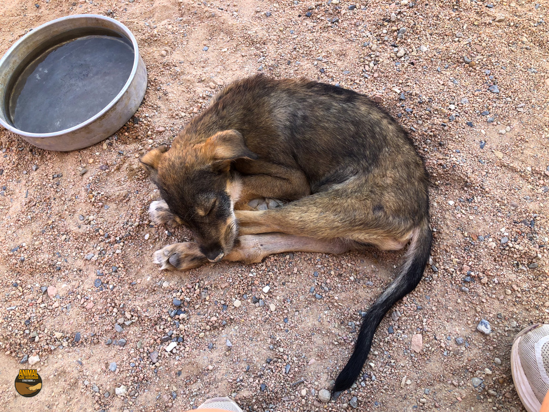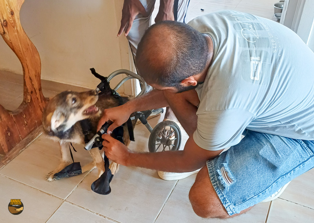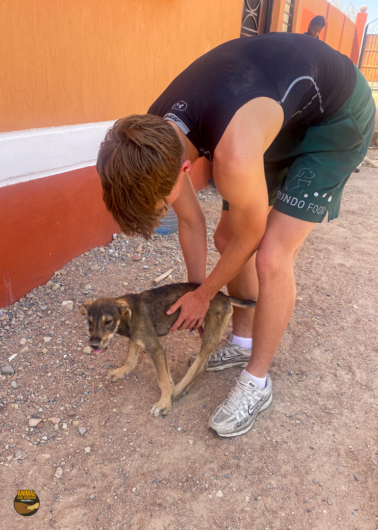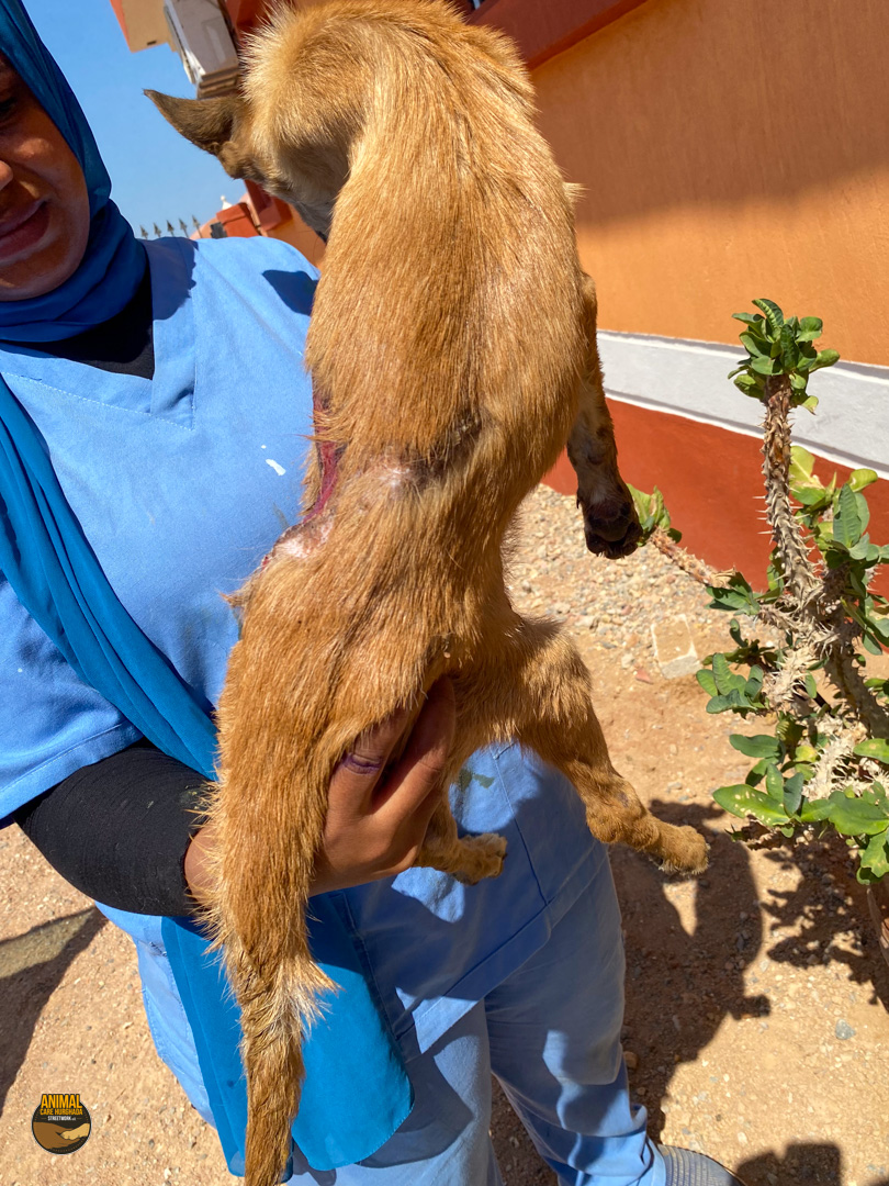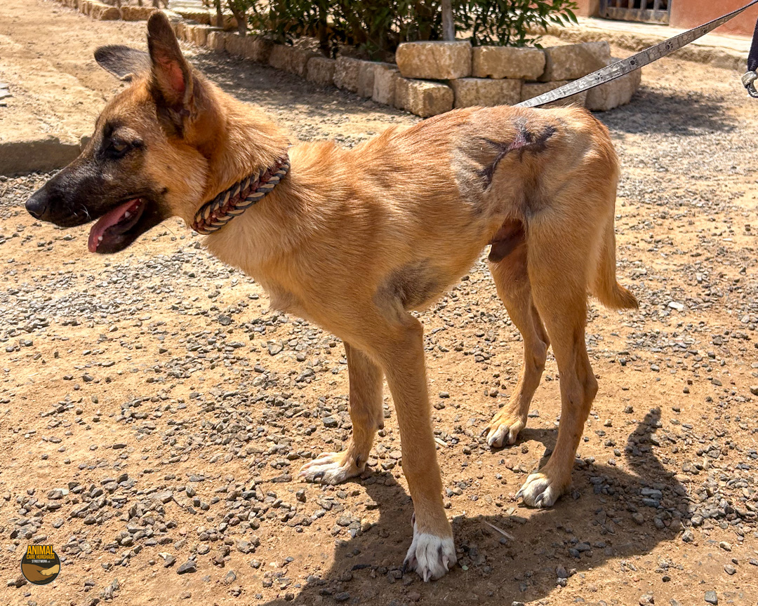Manche Geschichten lassen einen sprachlos zurück – Dropies ist eine davon. Gefunden haben wir sie bei einer unserer Kastrationsaktionen. Eigentlich wollten wir ihre Mutter mitnehmen, doch die Anwohner wehrten sich vehement – Kastration sei „haram“. Innerhalb von Sekunden wurde die Hündin verjagt. Und dann sahen wir Dropie: ein kleines humpelndes Hundekind, mitten unter ihren sechs Geschwistern. Der nächste Streit begann – diesmal um Dropie selbst. Wir wussten: wir können sie nicht zurücklassen. Zum Glück konnten wir uns durchsetzen und Dropie mitnehmen. Ihr Hinterbein war schwer verletzt – laut Anwohnern wurde sie von einem Auto überfahren. Doch niemand half ihr. Sie lag tagelang einfach dort, in ihrem Schmerz. In der Top Vet´s Tierklinik offenbarte das Röntgenbild das ganze Ausmaß: ein alter, komplizierter Bruch. Doctor Essam war ehrlich – eine Operation wäre schwierig. Aber wir wollten ihr Beinchen nicht einfach aufgeben. Leider blieb der Erfolg aus – die OP brachte nicht die erhofften Besserung. Doch Dropie ist eine Kämpferin. Sie nutzt ihr Bein, bewegt sich, spielt – und scheint, soweit die Ärzte es beurteilen können, schmerzfrei zu sein und nur das ist es was zählt. Eine Amputation ist weiterhin ein Thema, aber nur, wenn es medizinisch notwendig wird. Solange sie noch im Wachstum ist, beobachten wir die Entwicklung ihres Beines.