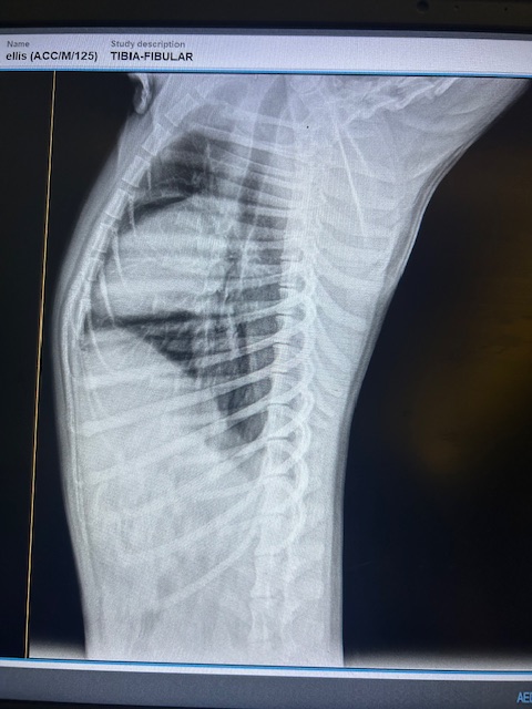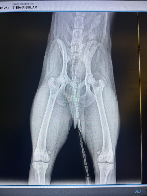 Lou wurde von Passanten gefunden, die uns zum Glück direkt anriefen. Man sah ihm auf den ersten Blick an, dass er starke Schmerzen hatte und genau diese Umstände machten es so schwer, ihn anzufassen. Wir gaben natürlich nicht auf und schafften es irgendwann, ihn vorsichtig in eine Box zu legen. So fuhren wir direkt zum Tierarzt, da wir wissen wollten, wieso er so starke Schmerzen hatte. Beim Röntgen kam raus, sein Becken ist gebrochen, wieso, weshalb, warum, wissen wir leider nicht. Nach einem Gespräch mit dem Doktor kam raus, es ist inoperabel. Er bekam Physiotherapie und langsam bauten sich seine Muskeln wieder auf. Die Schmerzen verschwanden.