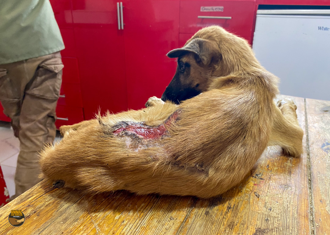 Browny hat bereits viel durchgemacht, doch sie hat sich ihre sanfte Art und ihren Lebensmut bewahrt. Nach einem schweren Autounfall wurde sie schwer verletzt auf der Straße gefunden – ihr Hinterbein war kompliziert gebrochen. Sie wurde sofort in die Top Vets Clinic gebracht, wo sie geröntgt und wenige Tage später operiert wurde. Die Heilung verlief leider nicht wie erhofft: Die Wunde entzündete sich immer wieder, der Knochen wollte nicht richtig zusammenwachsen. Ihre Behandlung zog sich über Wochen, sogar Monate – doch Browny hat tapfer durchgehalten.