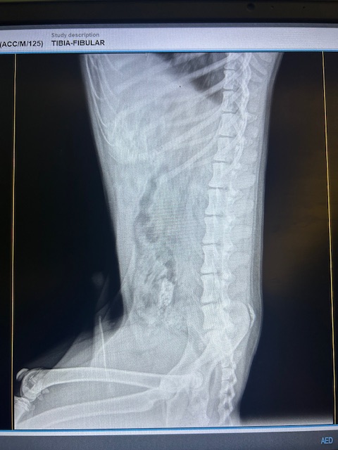 Ben wurde uns gemeldet, weil er nur auf drei Beinen lief – wir haben nicht gezögert und uns sofort auf den Weg gemacht. Vor Ort konnten wir ihn schnell sichern und direkt zum Röntgen bringen. Die Diagnose: Ein komplizierter Bruch. Nach ein paar Tagen Ruhe bei uns im Center folgte die Operation. Leider verlief diese nicht wie sie sollte. Trotz aller Bemühungen unsererseits und einer intensiven Genesungszeit nutzt Ben das operierte Bein nur selten und nicht wie ein gesunder Hund es tun würde. Weitere Eingriffe hier vor Ort würden seine Lebensqualität nicht verbessern, da die medizinischen Möglichkeiten hier leider Grenzen haben.